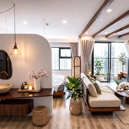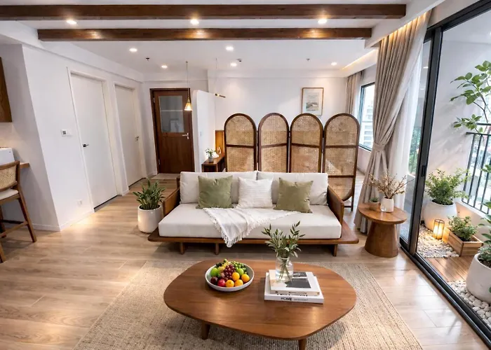 The apartment lies in the old part of Hanoi, approximately 15 minutes by car from Cong vien Mua Xuan.